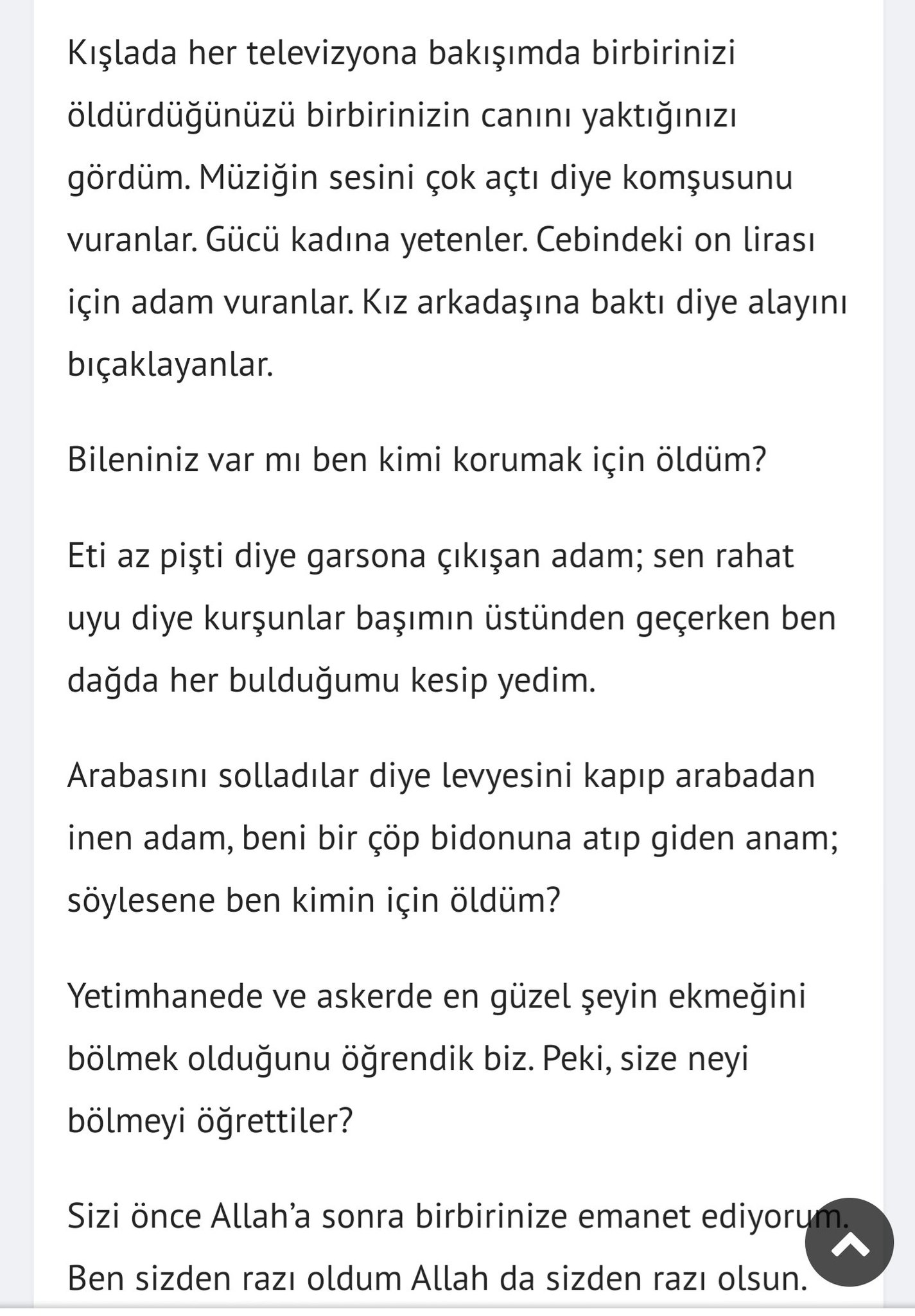 Ben ne için şehit oldum diye.